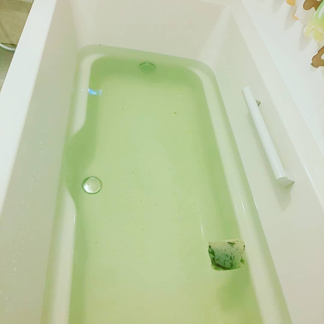 ※ お風呂がよもぎ色に染まってしまった場合は酸素系漂白材をお使いになると